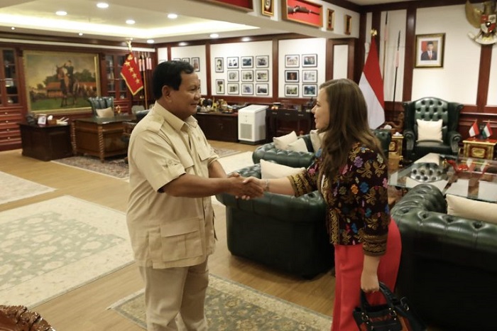 Menteri Pertahanan (Menhan) Prabowo Subianto Bertemu Dubes Hongaria Lilla Karsay Bahas Kerja Sama Transfer Teknologi pertahanan. (Dok. Kemhan.go.id)